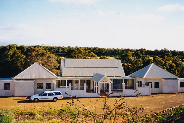 Cowaramup Creek Homestead – Now Olio Bello. The home built for the original owners. It consisted of a central hall which contained kitchen, dining and living rooms. Two large bedroom suites flanked the east and west of the main hall – all three elements were linked with a north facing glass gallery designed to capture warmth in winter. This area also formed the main display for the owners’ extensive indigenous art collection.