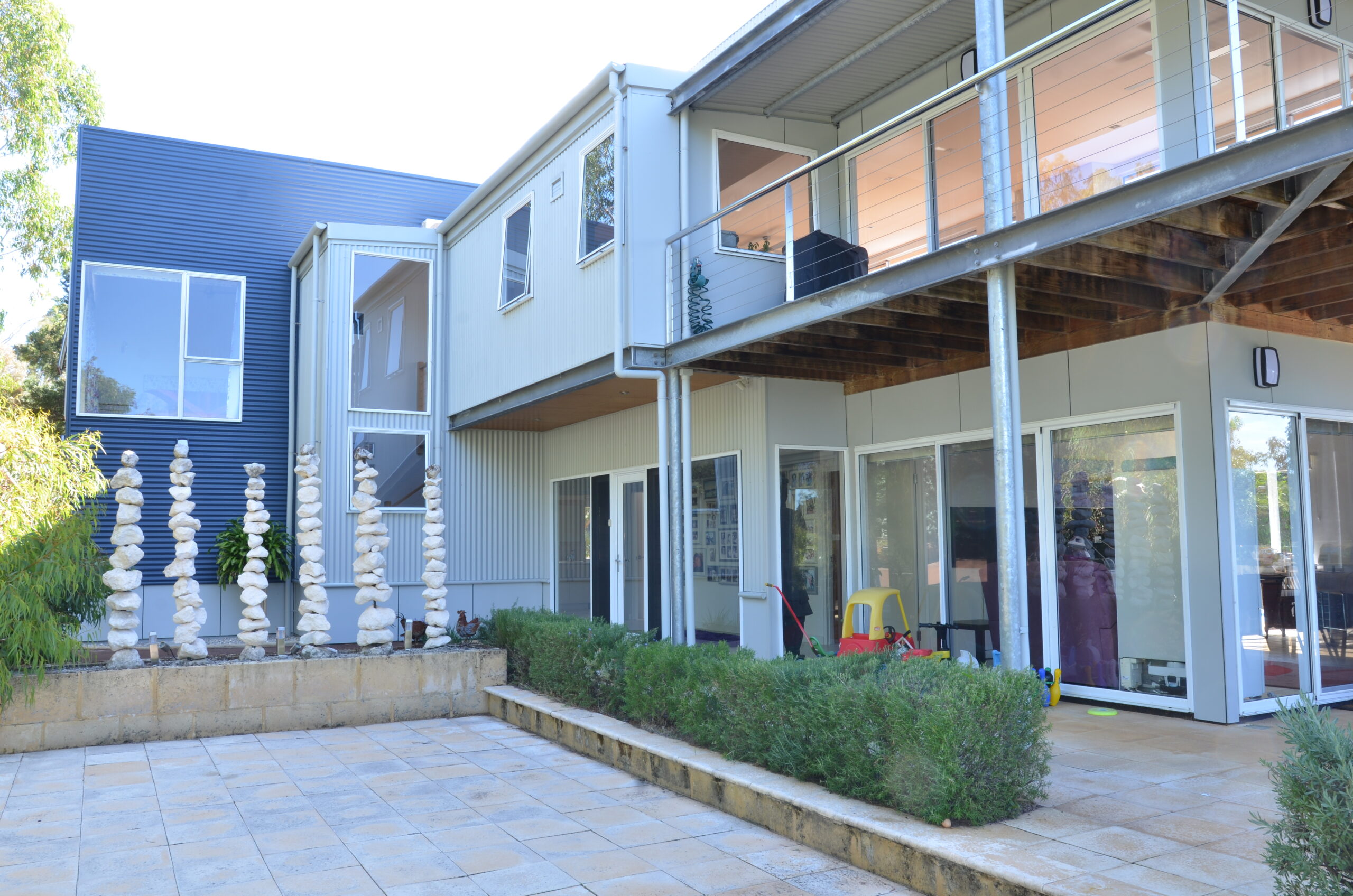 A steel framed insertion at the rear of a North Fremantle workers cottage. Original limestone and brickwork was carefully restored with the new addition providing a light-filled space for eating, dining and living.