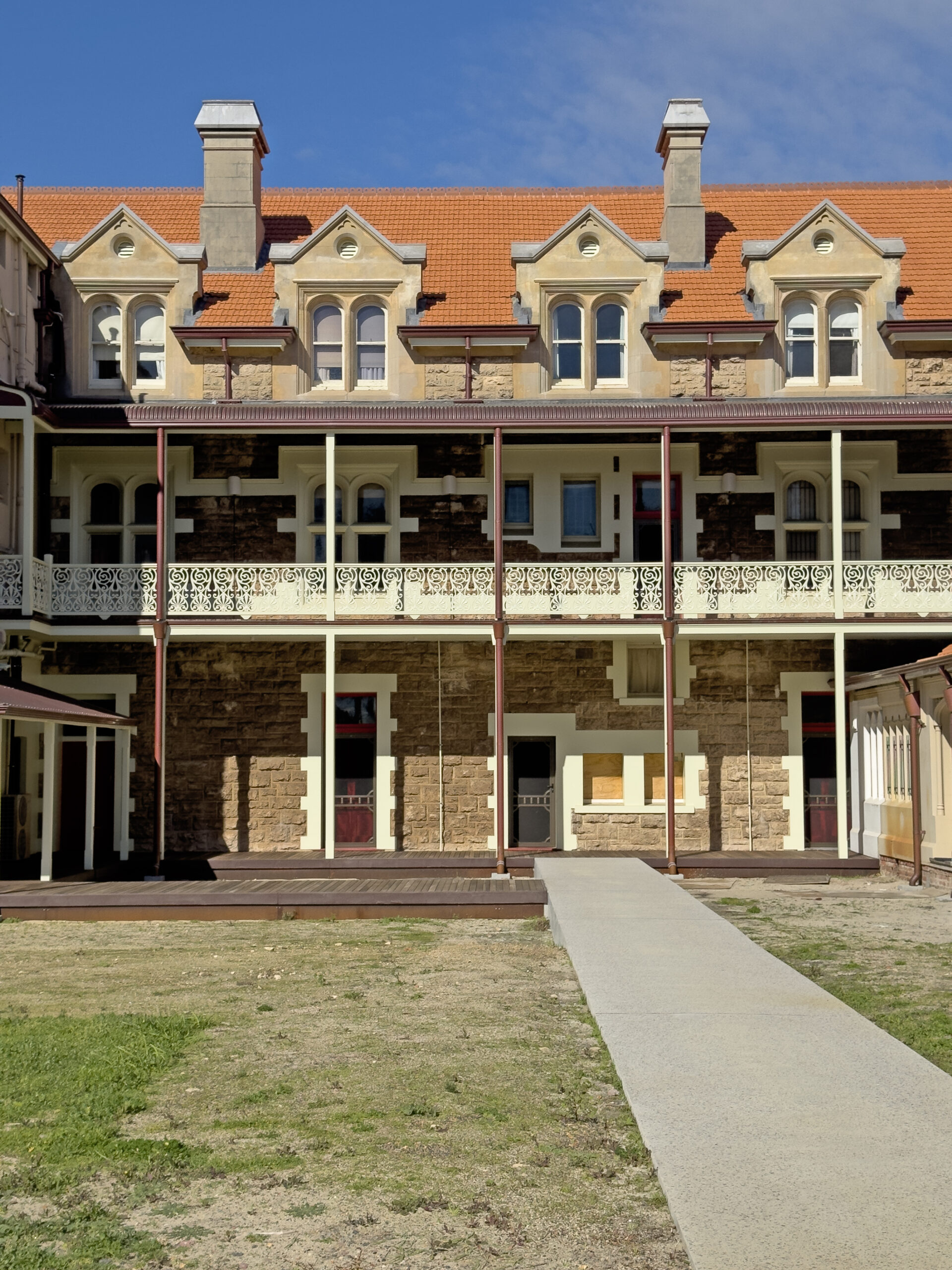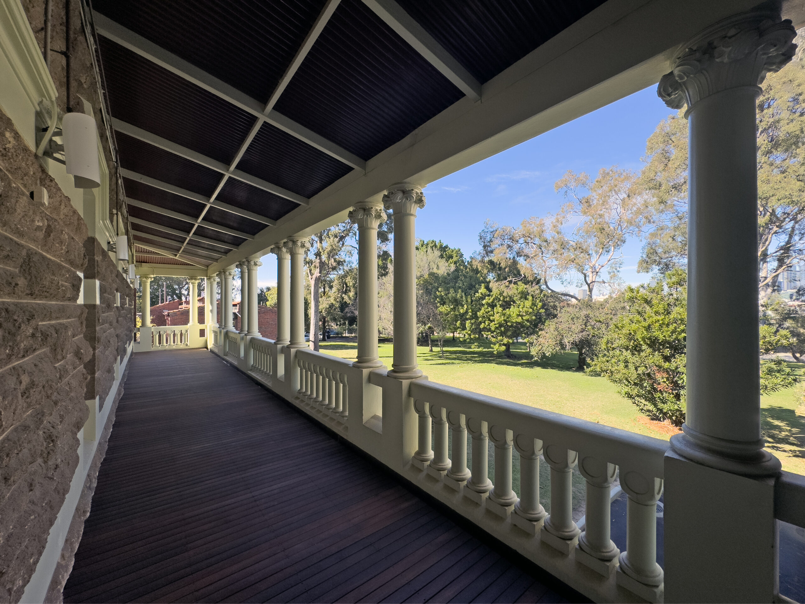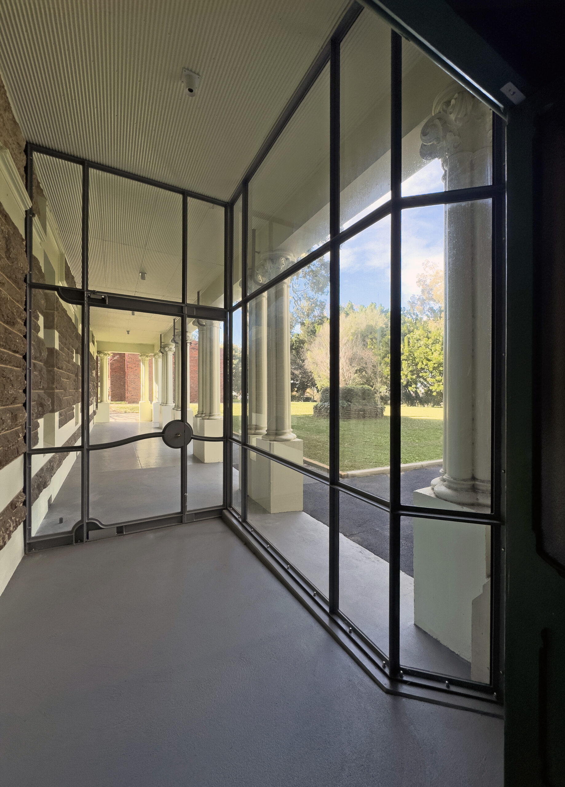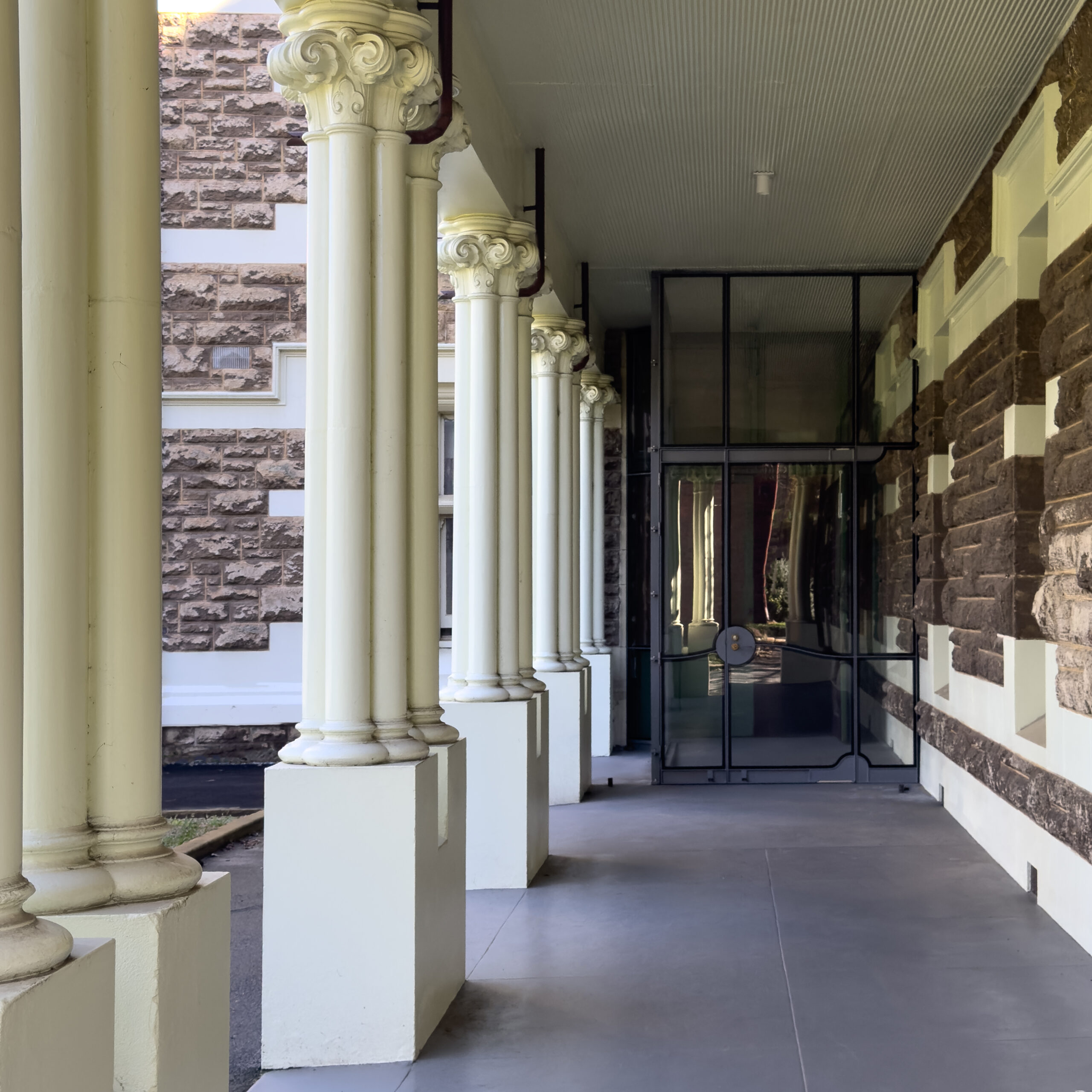 The monastery’s two-storey verandahs on the north and south sides had withstood more than a century of weathering, but time had taken its toll and most of the original timbers required replacement. The pressed metal verandah soffits, once a decorative highlight, had also corroded badly as water penetrated through the floors. To safeguard the new work and prevent future damage, an innovative self-draining subfloor system was introduced – a discreet yet vital improvement designed to manage water effectively and protect both structure and finishes.