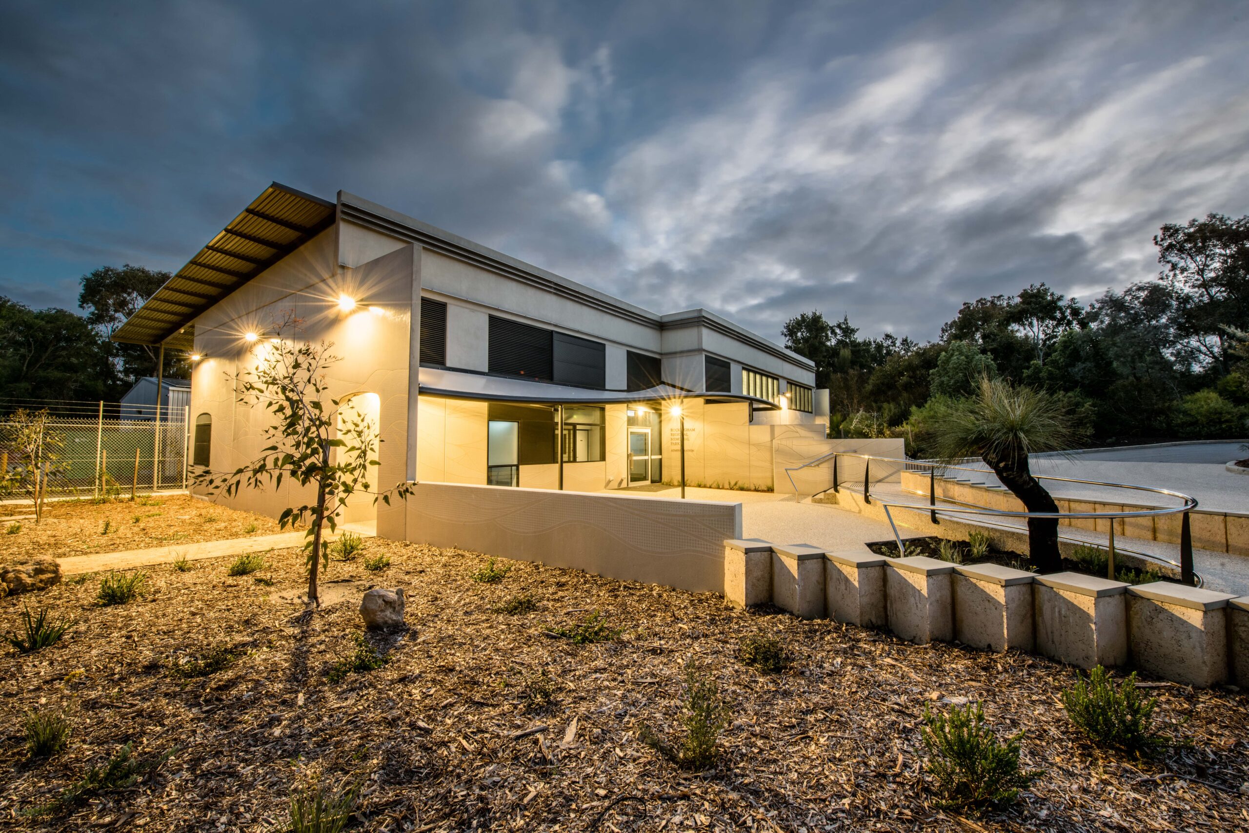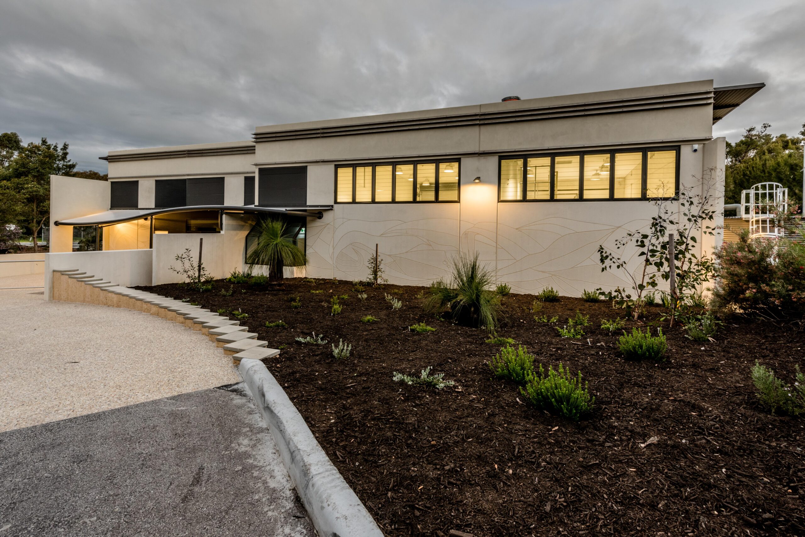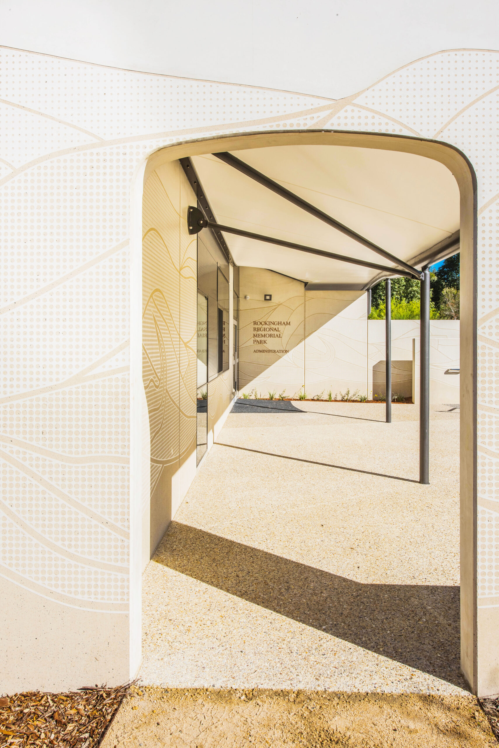 A new Administration Centre and Crematorium for the Metropolitan Cemeteries Board at their Rockingham Regional Memorial Park site. The precast walls use graphic concrete with a custom leaf motif to soften the impact of the otherwise industrial building in its bushland setting.
