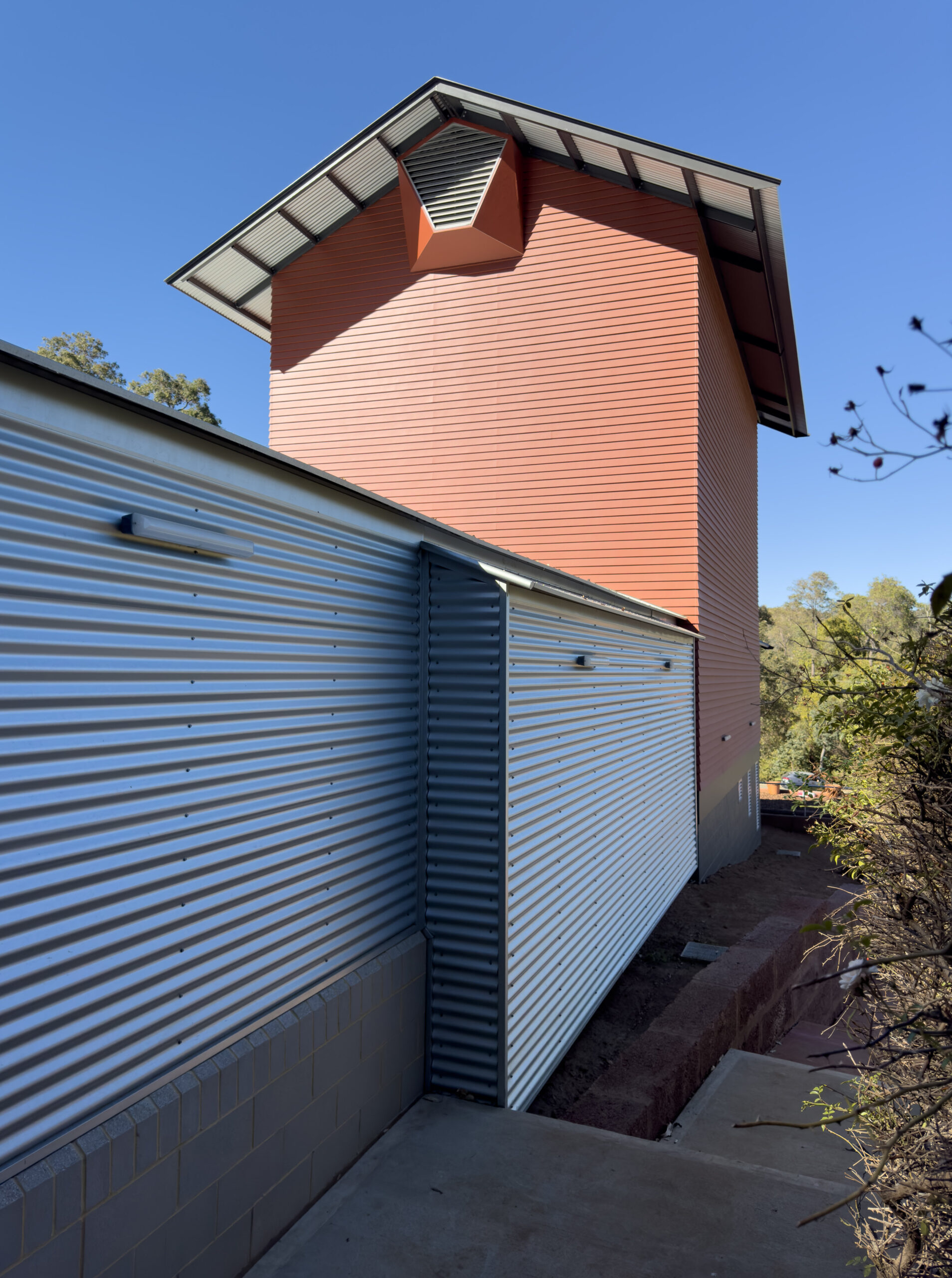Set within the bushland of the Perth Hills, the design integrates bushfire resilience strategies while maintaining the character of the site. The heritage building was retained in place, with new works sensitively developed around it. The reconstructed flytower improves backstage functionality, while energy-efficient systems such as Climate Wizards enhance thermal comfort.