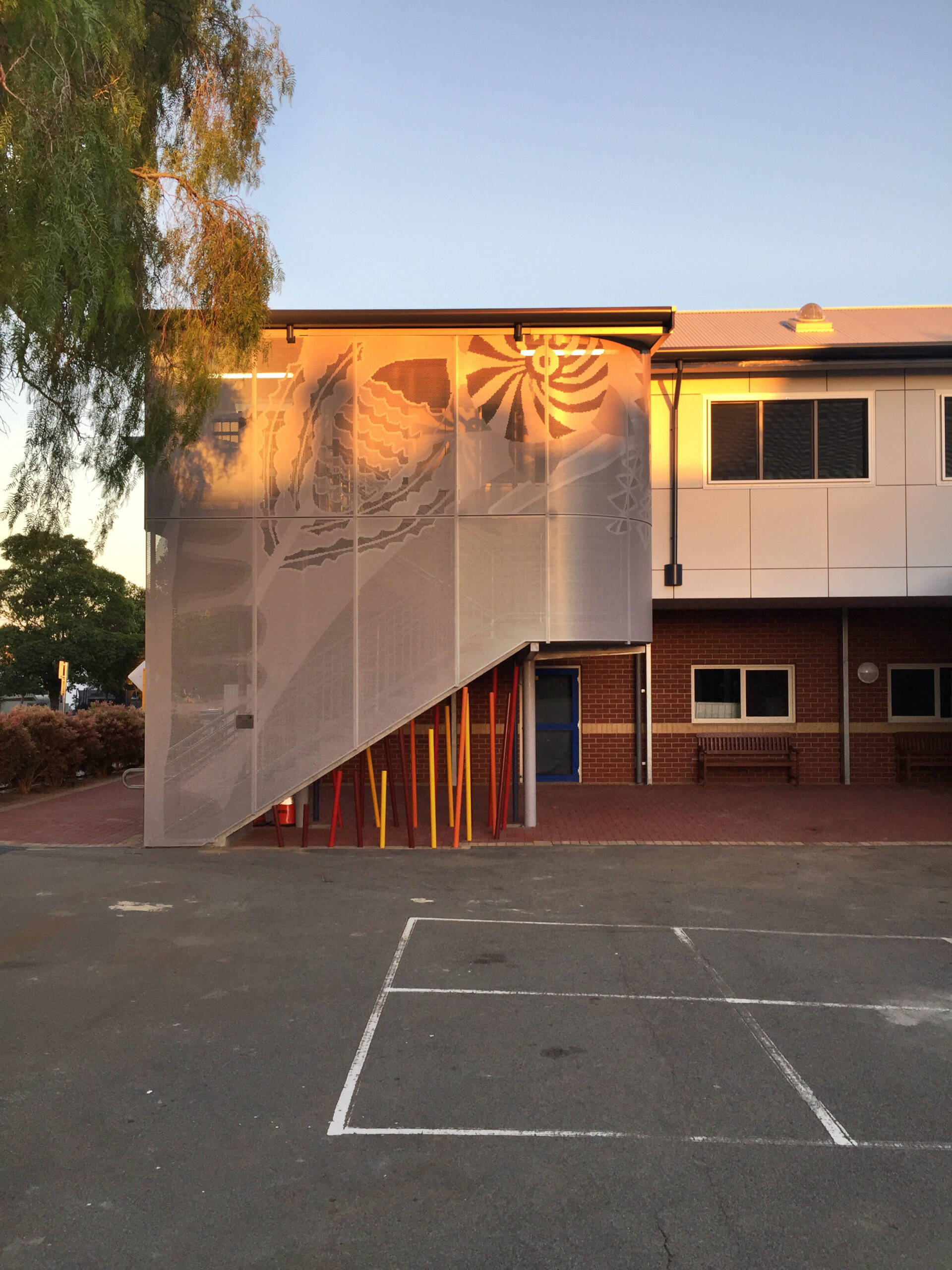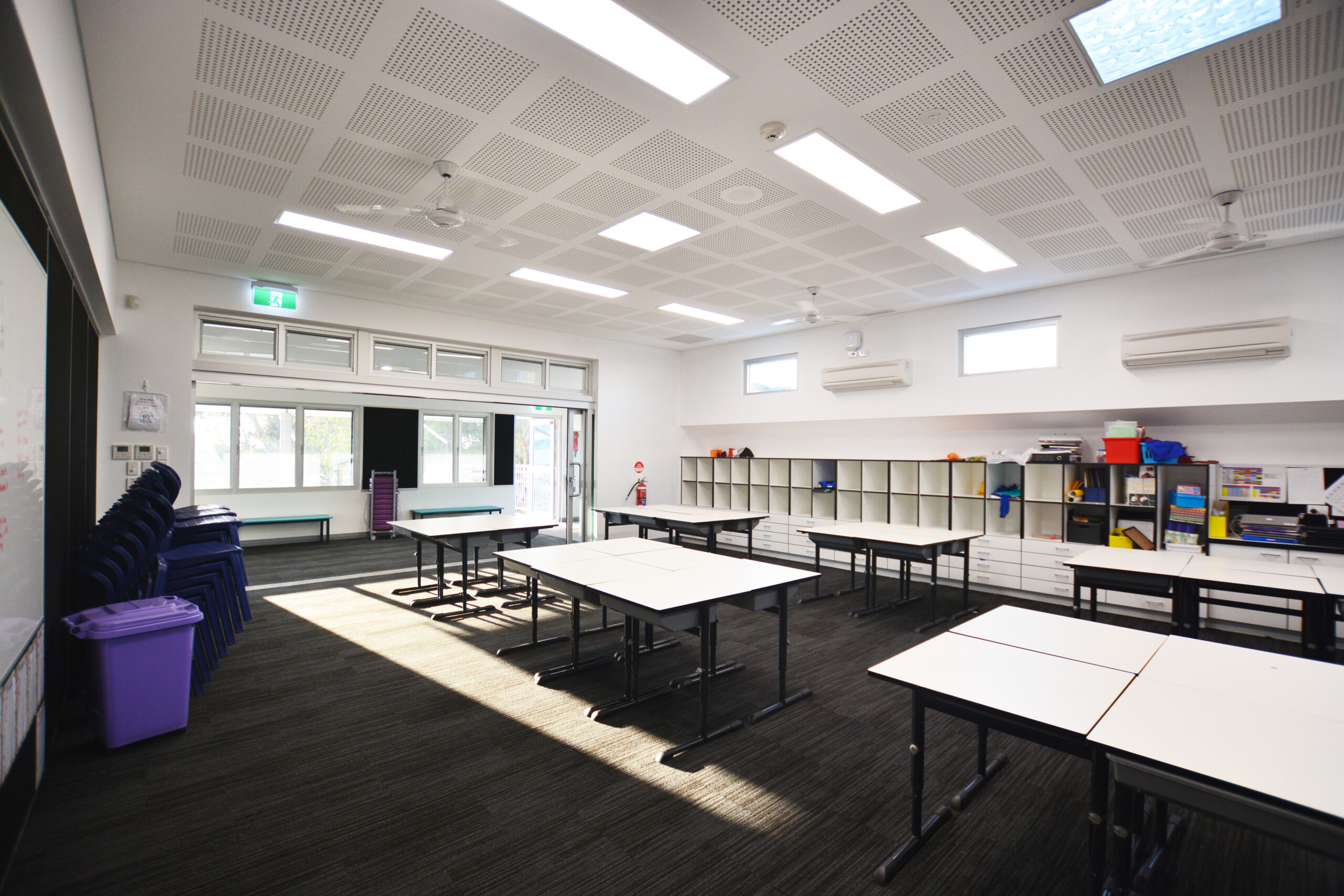In Stage Two of works at West Leederville PS the removal of the roof from a pattern library building allowed its conversion to a two storey building with classrooms on the upper level.